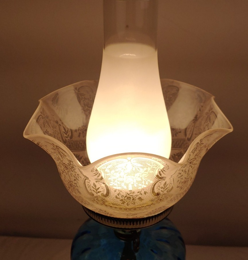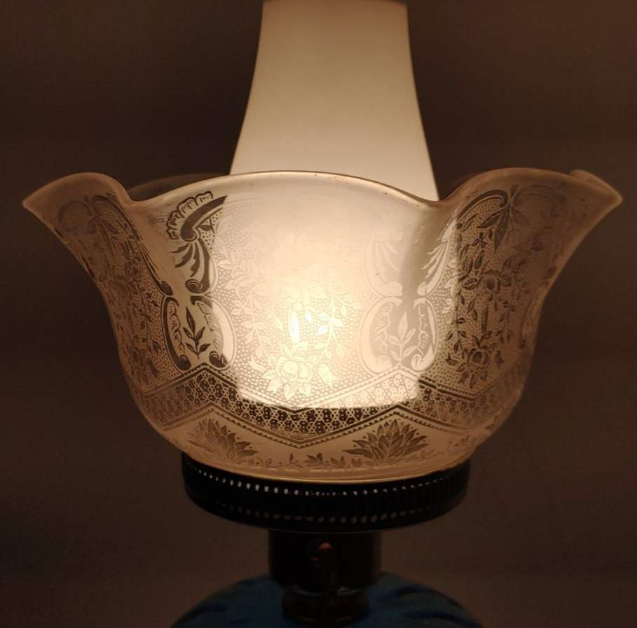 The shade is finely acid etched and has very ornate and elaborate detailing.