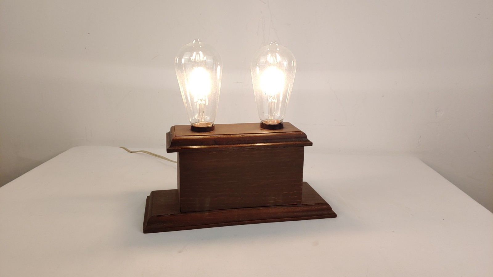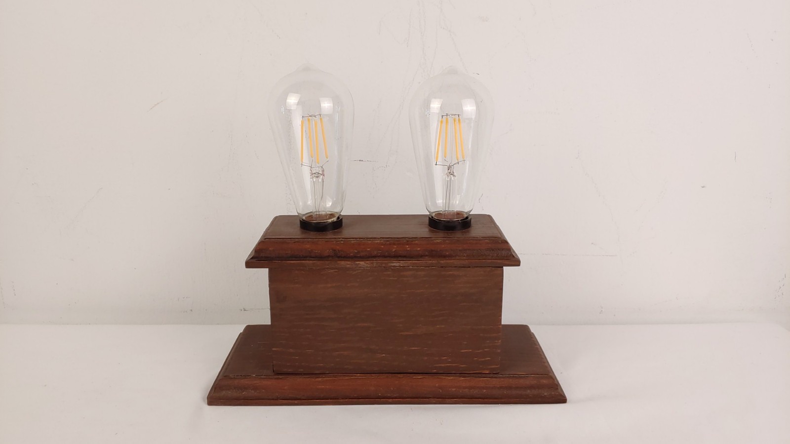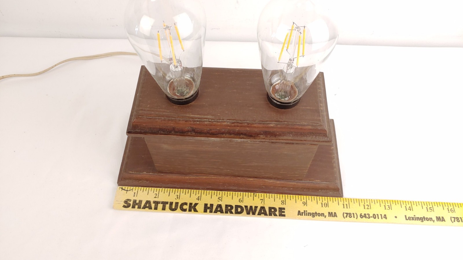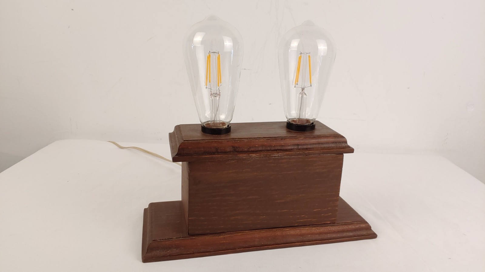 VTG Handmade Thomas Edison Style Wood Lamp Dual/Two Bulb Fixture Holder LED OOAK