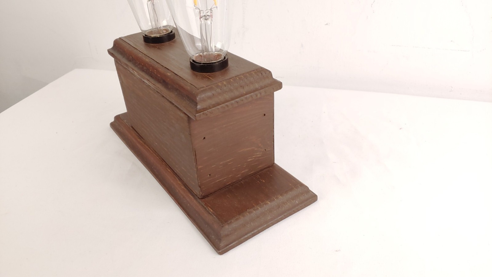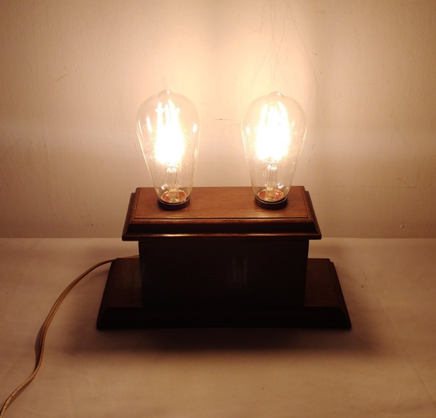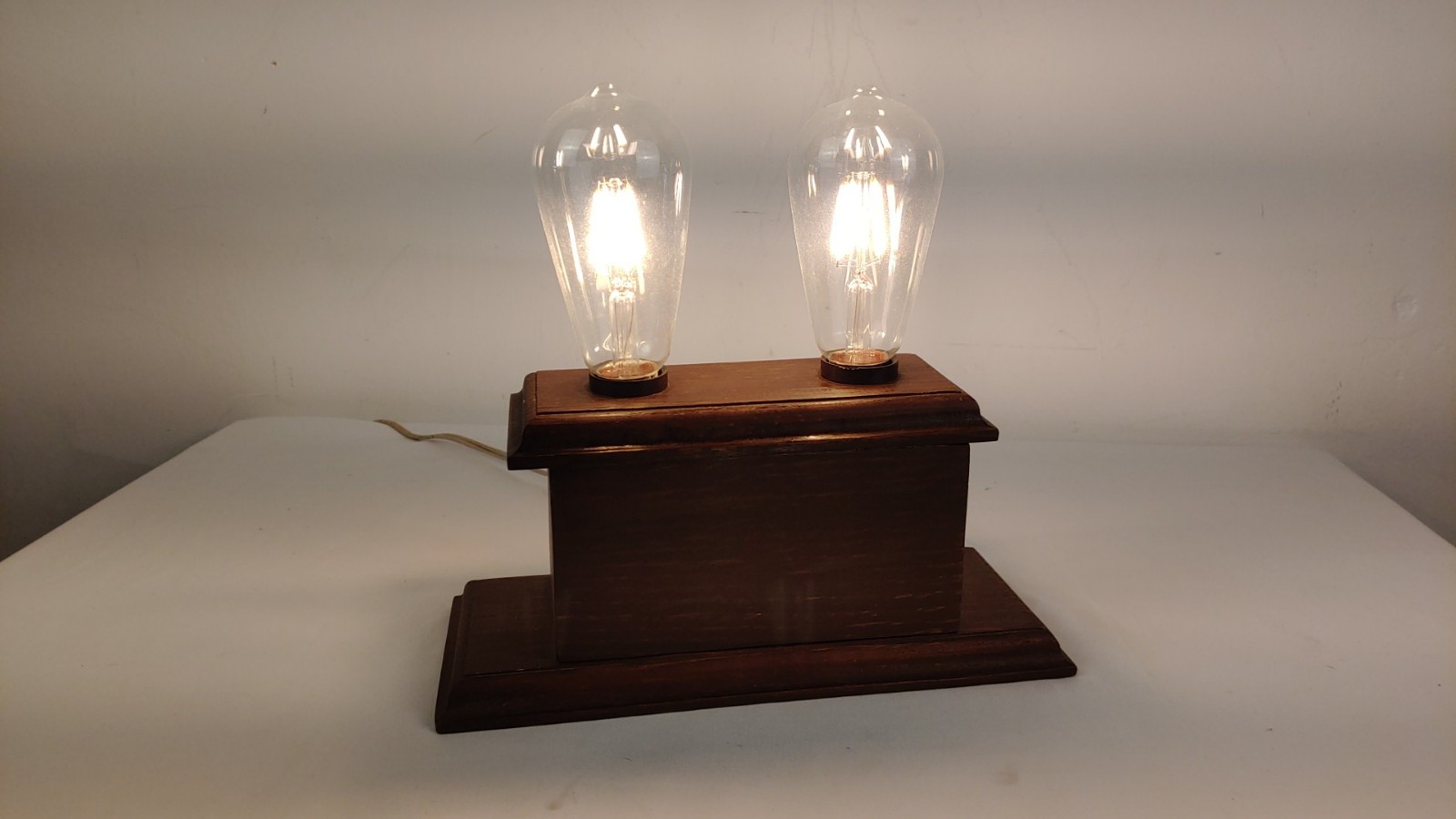 VTG Handmade Thomas Edison Style Wood Lamp Dual/Two Bulb Fixture Holder LED OOAK