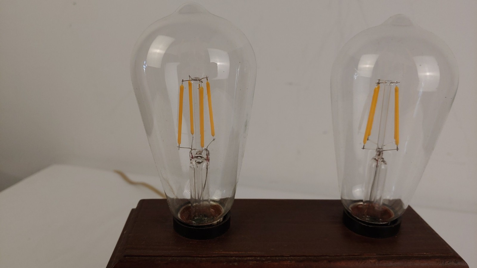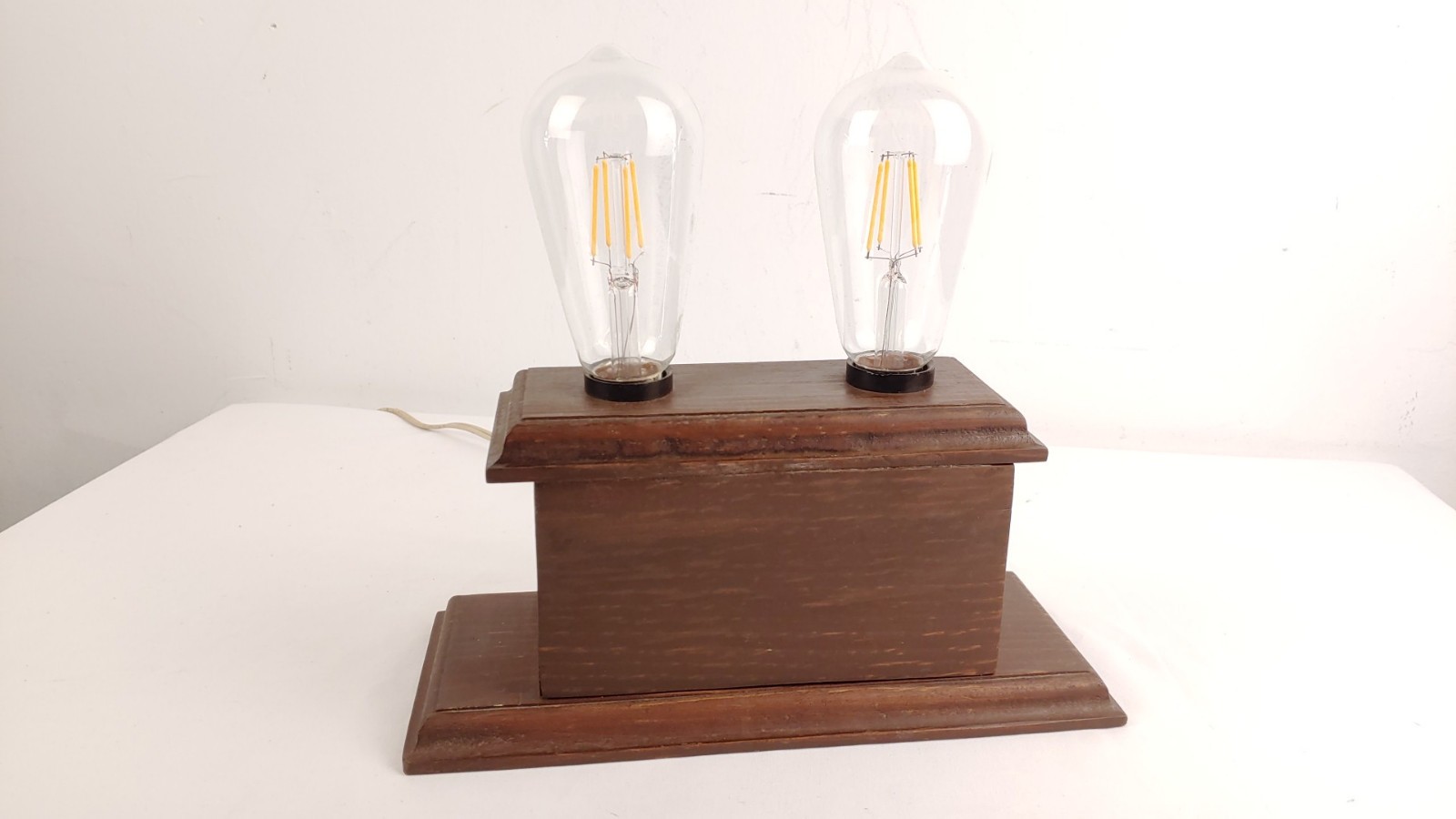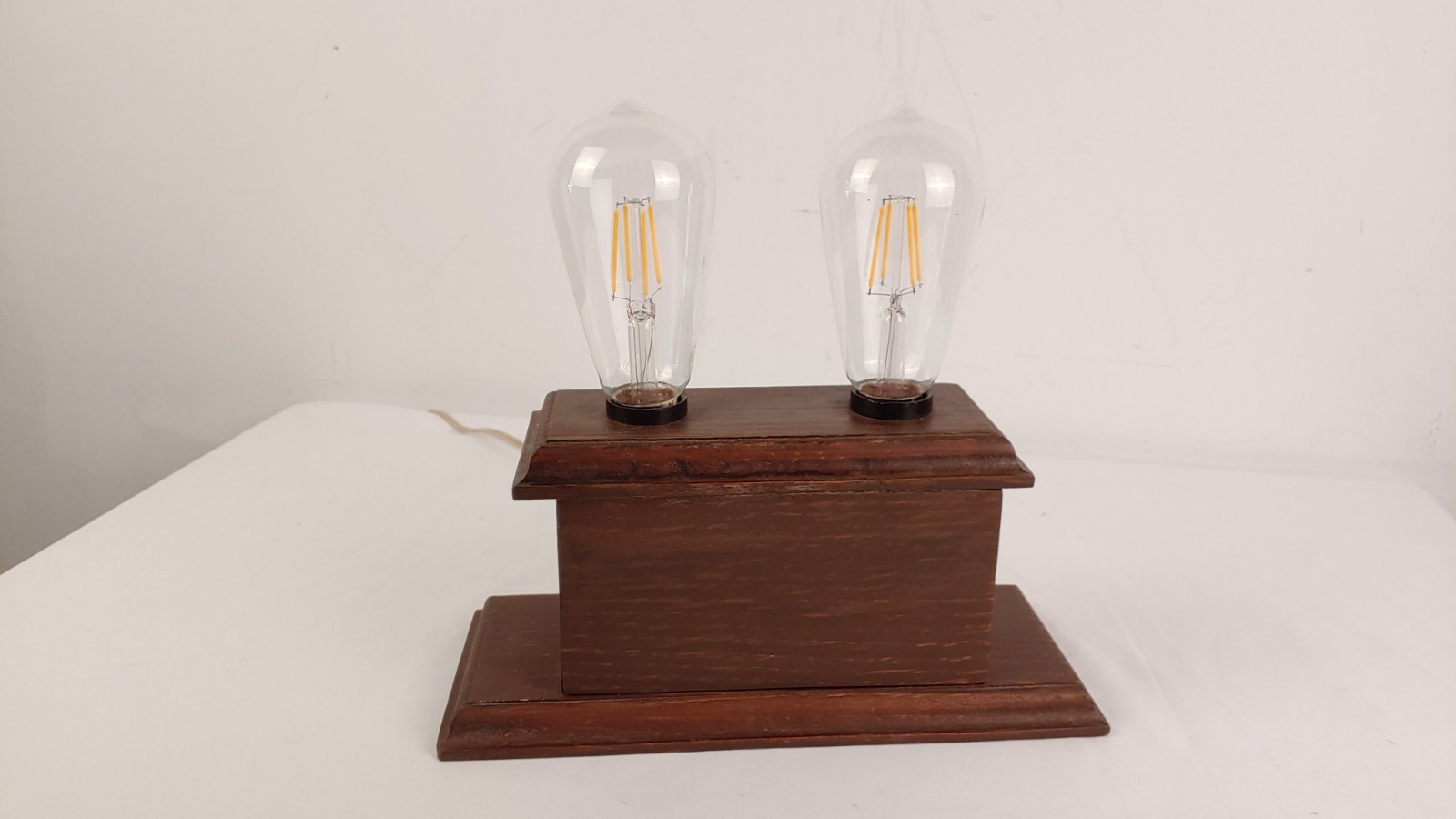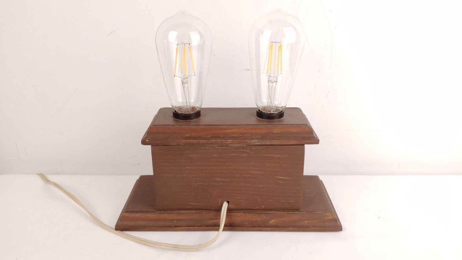 VTG Handmade Thomas Edison Style Wood Lamp Dual/Two Bulb Fixture Holder LED OOAK