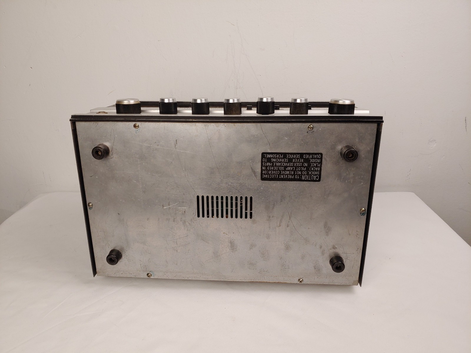 The radio is being offered for parts or repair only. Turns on and has no sound with an external speaker but that’s as far as I’ve tested it. Case has some paint wear / scuffs / discoloration.